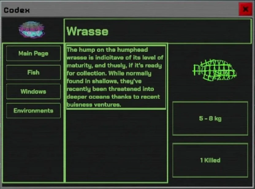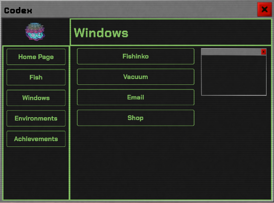 One problem that existed within the game was the lack of information telling the player how some windows work. To solve this problem it was decided that a codex of different aspects of the game would be added as a way for players to learn more.