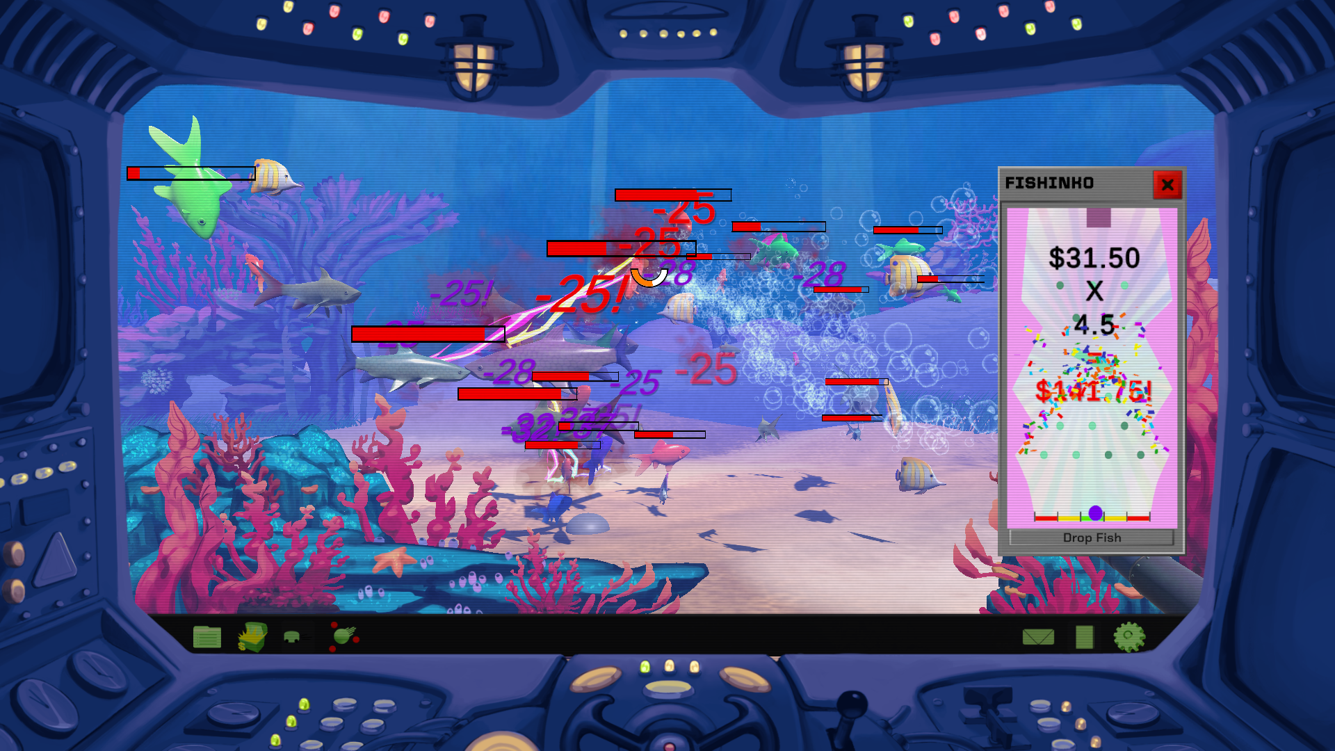 Fincremental OS is a hybrid incremental-fish-shooter and simulated operating system! Shoot down fish from the comfort of your submarine to collect and sell them on the market for money, then pour those funds back into your business to make more cash! Everything you need is easy to access in the built-in operating system, but configure carefully: The desktop is your window to the ocean, so the more windows you can see, the less fish you can shoot. Arrange your perfect desktop to optimize your fishing flow (Or just keep it all closed. Nothing’s stopping you)!