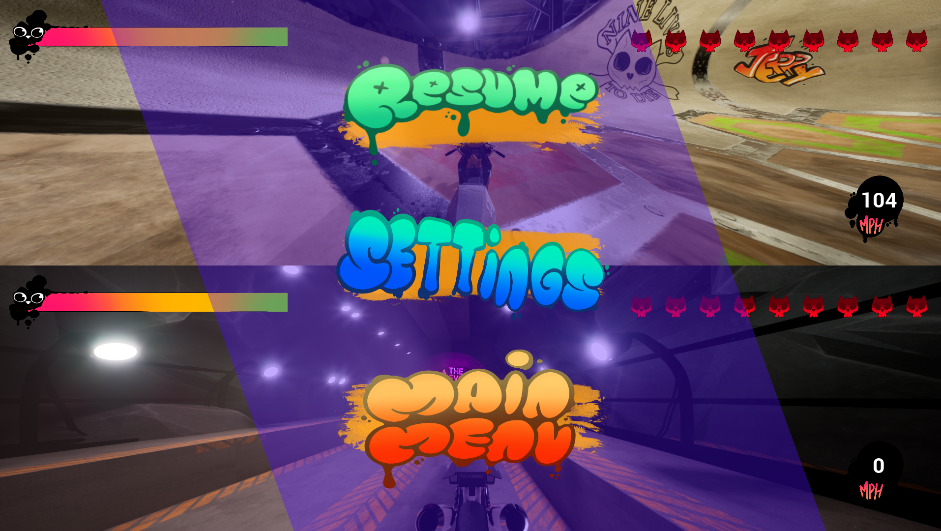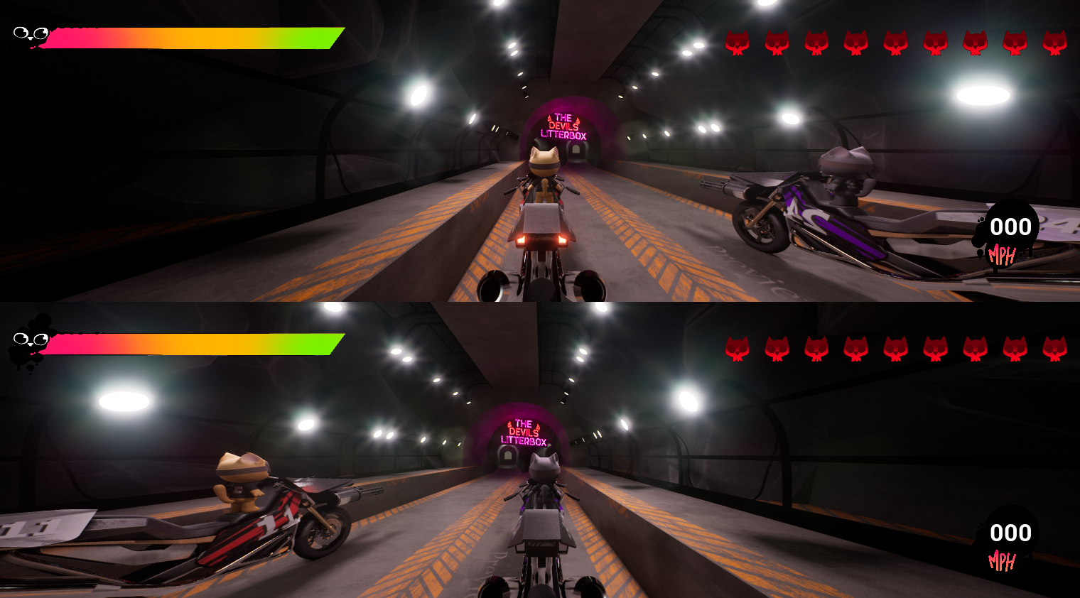 A fast-paced, competitive motorbike arena battler where stray cats fight to the ninth life.